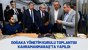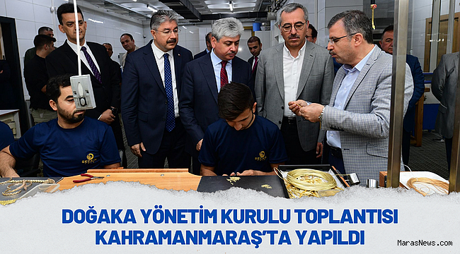 Kahramanmaraş Büyükşehir Belediye Başkanı Hayrettin Güngör, Kahramanmaraş Altınşehir Kuyumculuk İhtisas Küçük Sanayi Sitesi’nde gerçekleştirilen Doğu Akdeniz Kalkınma Ajansı (DOĞAKA) 105. Yönetim Kurulu Toplantısı’na katıldı. DOĞAKA Yönetim Kurulu Başkanı ve Hatay Valisi Rahmi Doğan’ın başkanlığında gerçekleştirilen toplantıda Başkan Güngör’ün yanı sıra Vali Ömer Faruk Coşkun, Osmaniye Valisi Erdinç Yılmaz, DOĞAKA Genel Sekreter Vekili Oğuz Alibekiroğlu, Kahramanmaraş Ticaret ve Sanayi Odası Başkanı Şahin Balcıoğlu ve ilgili kurum temsilcileri de yer aldı. Başkan Güngör ve beraberindeki heyet, toplantı sonrası Kuyumcukent’te esnaf ve işçileri ziyaret etti.