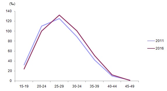 yaş grubundaki doğurganlık hızı, 2011 yılında binde 125 iken 2016'da binde 133