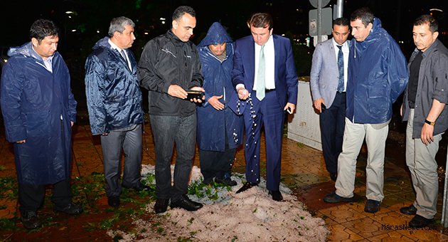 Çevre Koruma ve Kontrol Dairesi Başkanlığımıza bağlı 10 ekip 140 personelle Kapalı Çarşı, Ulucamii, Kıbrıs Meydanı, Azerbaycan Bulvarı ile ana arterlerde doludan mütevellit oluşan kirliliği temizlediler. Ekiplerimiz gece saat 02.00’ye kadar temizlik çalışmalarını tamamlarken, şehrimizin batı ve doğu bölgelerinde olmak üzere 60 adreste halen KASKİ ekiplerimizin çalışmaları devam etmektedir” diye konuşarak bilgi verdi.