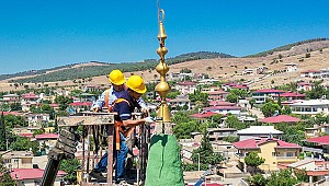 Dulkadiroğlu Belediyesi Fen İşleri Müdürlüğü’ne bağlı ekipler, minarenin külah ve alem kısmında oluşan hasarı büyük bir özenle tamir etti.