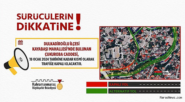 Kahramanmaraş Büyükşehir Belediyesi, Dulkadiroğlu ilçesi Kayabaşı Mahallesi’nde yer alan ve 2. grup tescilli taşınmaz kültür varlığı olarak belirlenen tarihi yapının mevcut durumu ile trafik ve yaya güvenliği açısından tehlike arz ettiğini belirterek Çukuroba Caddesi’nin 18 Ocak 2024 tarihine kadar kısmi olarak trafiğe kapatıldığını duyurdu. Alınan UKOME kararıyla cadde kısmi olarak trafiğe kapatılırken Büyükşehir Belediyesinden yapılan açıklamada; bölgede güvenlik önemlerinin alındığı ve herhangi bir olumsuzlukla karşılaşılmaması adına yaya ve araç trafiğinde alternatif güzergâhların tercih edilmesinin önem arz ettiği belirtildi.
