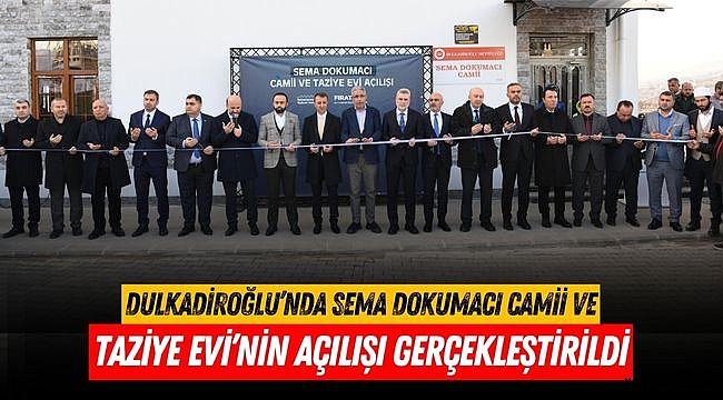 Kahramanmaraş Büyükşehir Belediyesi ve hayırsever Dokumacı Ailesi iş birliğiyle Dulkadiroğlu ilçesi Yenikent Mahallesi’nde inşa edilen Sema Dokumacı Camii ve Taziye Evi’nin açılışı gerçekleştirildi. Programa; Büyükşehir Belediye Başkanı Fırat Görgel, AK Parti İl Başkanı Muhammed Burak Gül, KSÜ Rektörü Prof. Dr. Alptekin Yasım, KİÜ Rektörü Prof. Dr. İsmail Bakan, Onikişubat Belediye Başkanı Hanifi Toptaş, Dulkadiroğlu Kaymakamı Hicabi Aytemür, Kahramanmaraş Ticaret ve Sanayi Odası Yönetim Kurulu Başkanı Mustafa Buluntu, AK Parti Dulkadiroğlu İlçe Başkanı Ali Çam ile Onikişubat İlçe Başkanı Durdu Sefa Kekeç, İl Müftüsü Abdurrahman Kotan, hayırsever Dokumacı ailesi ve çok sayıda vatandaş da katıldı.