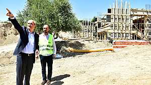 İnşaatı tüm hızıyla devam eden yurt binasında incelemelerde bulunan Başkan