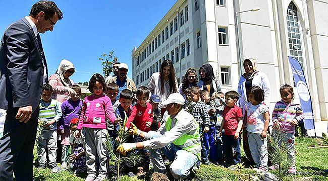 temin edilen fidanları toprakla buluşturdu. Öğrenciler kendi diktikleri ağaçları