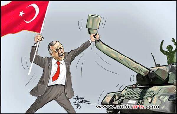 Somalili karikatürist Amin Amir Cumhurbaşkanı Erdoğan'ın dik duruşu ve darbeyi püskürtmesini böyle çizdi.
