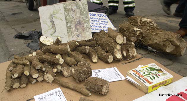 Halk arasında yaygın olan birçok hastalığa iyi gelen adamotu, Kahramanmaraş’ta kapış kapış satılıyor. Genellikle Akdeniz ile Ege bölgelerinde yetişen ve birçok siyatik ağrıların tedavisinde kullanılan adamotuna Kahramanmaraş’tan da ilgi büyük. Bu işin ticaretini yapan Aktarlardan Enver Koç, Kahramanmaraş’ta Bugün Gazetesi’ne adamotunu anlattı.