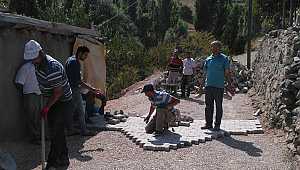 tarafından kilitli parke taşı döşeme çalışmaları, eski arazi yollarının