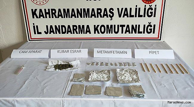 Alınan bilgilere göre, Ekinözü İlçesinde yaşayan O.Ç’nin (36) uyuşturucu madde ticareti yaptığının tespit edilmesi üzerine ikametinde yapılan aramada satışa hazır birer gramlık alüminyum folyo içerisinde 10 adet metamfetamin, beyaz kağıt içinde 10 gram kubar esrar ve 8 adet kamış pipet ile şahsın üzerinde 1 gram metamfetamin ve 1 adet kamış pipet ele geçirildi. Yine şüphelinin Elbistan İlçesine bağlı Karaelbistan Mahallesi'nde akrabasının kullanmadığı boş evinde yapılan aramada alüminyum folyo içerisinde yaklaşık 15 gram metamfetamin ile 1 adet cam aparat ele geçirildi. Gözaltına alınan O.Ç, jandarmada işlemlerinin ardından adliyeye sevk edilecek.