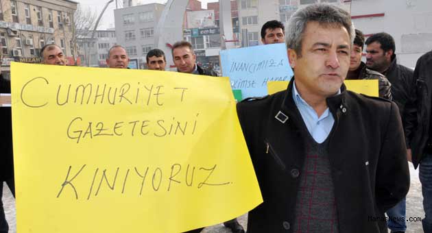 Vatandaşlar, basın açıklamasının ardından Cumhuriyet gazetesinin bugünkü sayılarını yaktı. (İHA)
