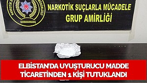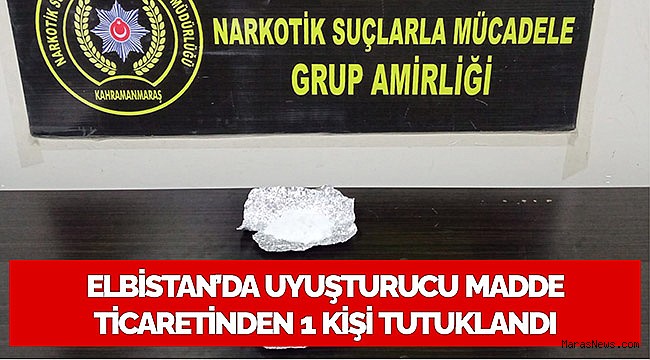 Edinilen bilgiye göre, Elbistan Narkotik Suçlarla Mücadele Grup Amirliği ekipleri tarafından durumundan şüphelenilen bir kişi hakkında inceleme başlatıldı. Elbistan Cumhuriyet Başsavcılı koordinesinde şüphelinin ikametinde yapılan aramada çeşitli miktarlarda uyuşturucu madde bulunması üzerine G.Ç gözaltına alındı. Gözaltına alınan şüpheli emniyette işlemlerinin ardından sevk edildiği adli mercilerce tutuklanarak cezaevine konuldu.