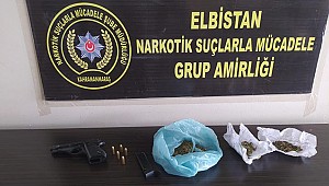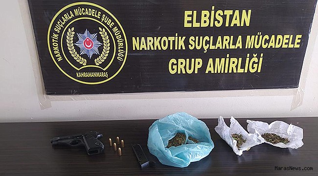 Edinilen bilgiye göre, Elbistan Narkotik Suçlarla Mücadele Grup Amirliği ve Elbistan Trafik Denetleme Büro Amirliği görevlileri tarafından yapılan uygulamada durumundan şüphelenilen bir araç ve içerisinde bulunan iki şahsın üzerinde yapılan aramada çeşitli miktarda uyuşturucu madde ile bir adet ruhsatsız tabanca bulundu. Uyuşturucu madde ve ruhsatsız tabancaya el koyan ekipler, 2 kişi hakkında yasal işlem başlatıldı.