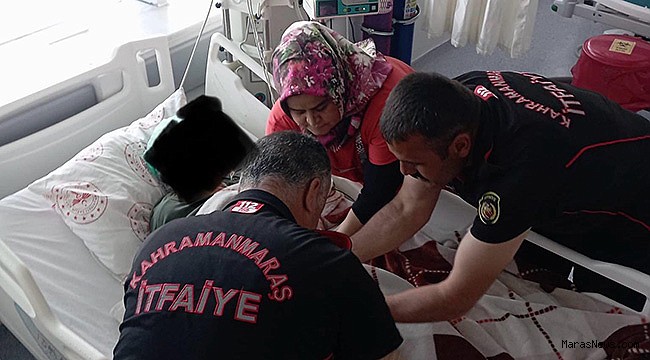 Edinilen bilgiye göre; Elbistan Devlet Hastanesi’nde tedavi gören yaşlı kadının şişen parmağını fark eden sağlık personeli, itfaiye ekiplerinden yardım istedi. İhbar üzerine kısa sürede hastaneye gelen itfaiye ekipleri, yaşlı kadının parmağındaki yüzüğü keserek çıkardı.