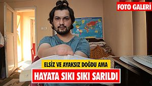 yaşındaki Şahan, elleri ve ayakları olmadan dünyaya geldi.