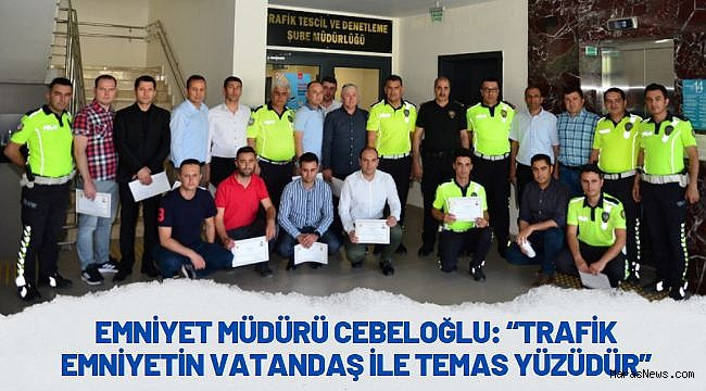 Cebeloğlu, “Kahramanmaraş İl Emniyet Müdürlüğü Trafik Tescil ve Denetleme Şube Müdürlüğümde sayın valimizin takdirleri ile Başarı belgesine uygun görülen 24 personelimize Sayın Valimiz Ömer Faruk Coşkun adına başarı belgelerini takdim ettik, Trafik Denetleme Şube Müdürlüğü Personelimiz trafik konusunda yoğun denetimlerini şehir merkezinde 7/24 sürdürmektedirler, şehrimizde araçların ve yayaların güvenliği için, mesai mefhumu gözetmeksizin büyük bir özveri ile bu görevlerini yürütüyorlar dolayısıyla emsallerine örnek olması, moral ve motivasyonu arttırması amaçlanarak personelimizin bu başarılı ve özverili çalışmalarının karşılıksız olmadığını bilinmesi adına Sayın Valimizin takdirleri ile 24 personelimize başarı belgelerini bizzat ben verdim, burada sizler ile beraber bu anı paylaştık. İlimizde güvenli bir trafik ortamının oluşması için gece gündüz yoğun bir şekilde çaba harcayan arkadaşlarımı bende tebrik ediyor, başarılarının devamını diliyorum.Trafik birimlerimizde ki personele özellikle vatandaş ile iletişim, Devletin gülen yüzünün vatandaşa gösterilmesi, açısından gereken bütün eğitimleri verdik, devam ediyoruz, arkadaşlarımız da sağ olsunlar, çok iyi bir şekilde vatandaşlar ile ilişkilerde bizim imajımızı zedeleyecek emniyet teşkilatımızın vakur duruşunu bozacak hiçbir davranış sergilemediler bugüne kadar ben bu anlamda da başta Şube müdürüme ve personele teşekkür ederim’’ dedi.