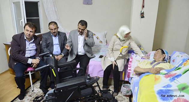 Büyükşehir Belediyesinden akülü araba talebinde bulunan 74 yaşındaki Engelli Kifayet Sevindik’i evinde ziyaret ederek arabasını veren Erkoç’un yanında Ak Parti Milletvekilleri Dr. Mehmet İlker Çitil, Nursel Reyhanlıoğlu, Afşin İlçe Belediye Başkanı Mehmet Fatih Güven, Ak Parti İl Kadın Kolları Başkanı Ayşe Kılıç, Engelliler Şube Müdürü Mehmet Fatih Akşam da vardı.