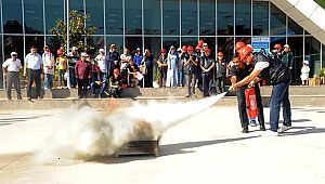 yangın söndürme işlemlerinin yanı sıra yaralı kurtarma eğitimi de