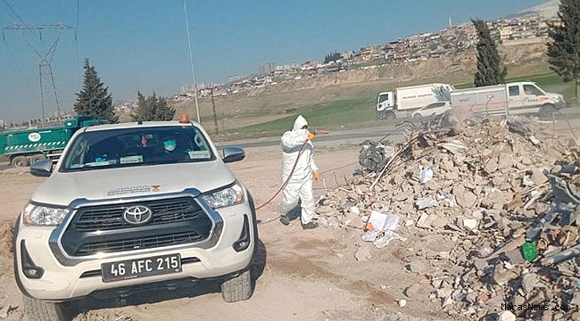 Depremin meydana geldiği ilk andan itibaren şehir genelinde arama kurtarma, yangına müdahale, altyapı tadilatı, vatandaşların yeme içme ve barınma ihtiyaçlarının karşılanması noktasında çalışmalarını aralıksız sürdüren Kahramanmaraş Büyükşehir Belediyesi, deprem sonrası meydana gelebilecek salgın hastalıkların önüne geçmek için enkaz alanlarında ilaçlama uygulamaları gerçekleştiriyor. Çevre illerden yardıma gelen belediyelerinde katkıda bulunduğu çalışmalarda toplamda 30 araç ve 250 personel görev alıyor. Yoğun bir şekilde sürdürülen çalışmalarla, deprem sonrası meydana gelebilecek salgın hastalıkların önüne geçilerek halk sağlığının korunması hedefleniyor.