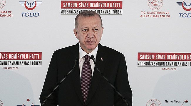 demir yolu hattının tüm alt ve üst yapısıyla yenilendiğini ifade eden Erdoğan,