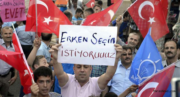 Kahramanmaraş Merkez Onikişubat ilçesine bağlı Hacı Bayram Veli Mahalle Muhtarı Mehmet Işık ve vatandaşlar, "Koalisyona Hayır, Erken Seçime Evet" şeklinde sloganlar atarak mahallede yürüdüler.