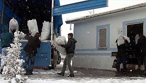 kuru gıda, şeker, çay, battaniye, giysi, eldiven ve bere gibi eşyaları