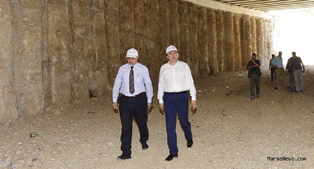 Ulucamii Tünel Kavşakta incelemelerde bulunan Başkan Erkoç daha sonra Rıdvan Hoca Yeraltı Çarşısı’na geçti.