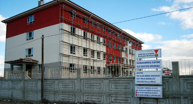 Eğitim alanında ciddi bir açığı kapatacak olan Elbistan Esentepe Ortaokulu’nda kaba inşaatı bitmiş olup, sıva ve boya çalışmaları yürütülmektedir.