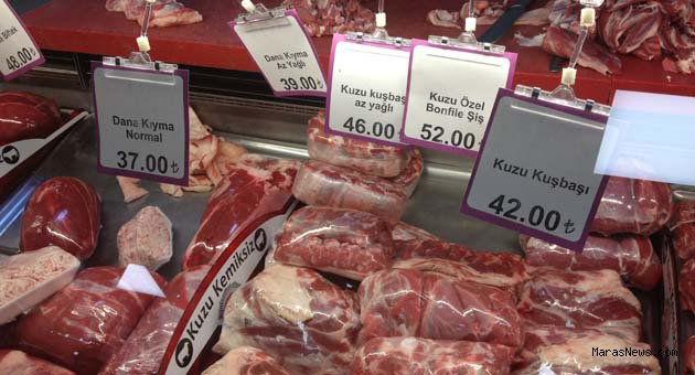 Bir kg kuşbaşı kuzu eti az yağlı 46 TL, 1 Kg Kuzu normal kuşbaşı 42 TL, 1 Kg özel kuzu kuşbaşı şiş 56 TL, Dana Biftek 48 TL, Dana az yağlı kıyma 39 TL, Dana kıyma normal 37 TL’den satılıyor.