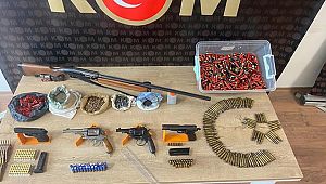 1 av tüfeği ve silahlara ait çok sayıda mermi ve fişek ele geçirilirken, Y.A.