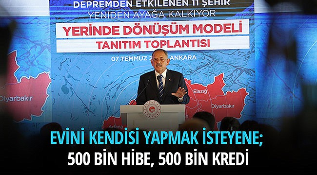 Bakan Mehmet Özhaseki, deprem bölgesinde yerinde dönüşümü hızlandırarak depremzedelerin biran önce kalıcı konutlara kavuşmaları için başlatılan ‘Yerinde Dönüşüm Projesi’yle. Çevre, Şehircilik ve İklim Değişikliği Bakanlığının denetimi ve kontrolünde kendi evini ve işyerini yerinde yapmak isteyenlere verilecek desteğin, konutlar için 500 bin lirası hibe, 500 bin lira kredi, işyerleri için ise 250 bin lira hibe, 500 bin lira da kredi olduğunu söyledi.