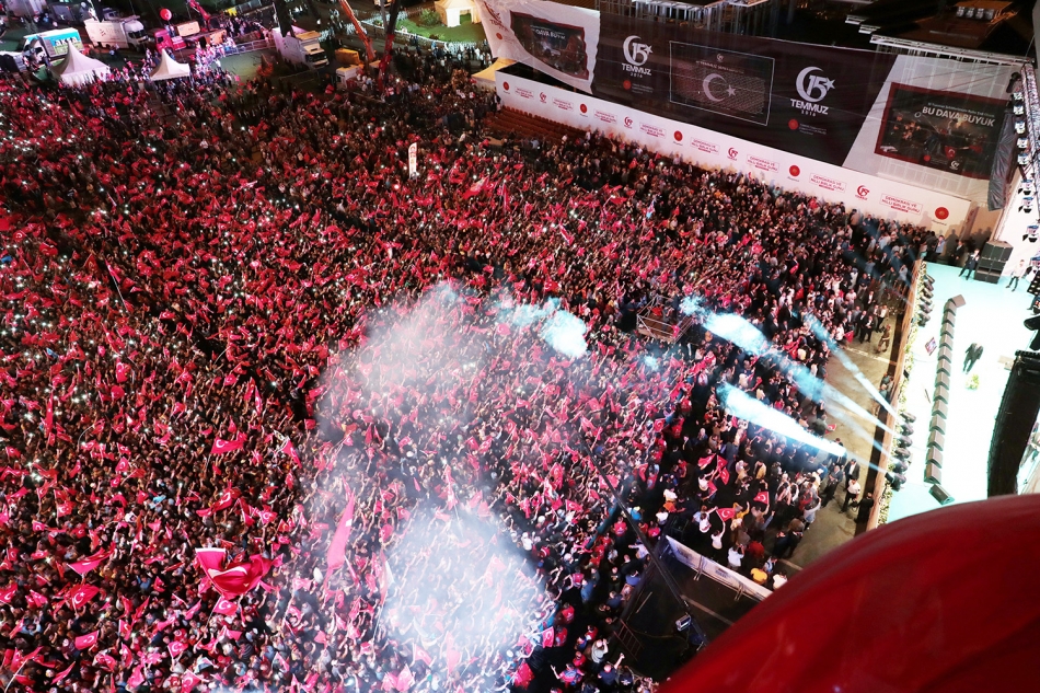 Cumhurbaşkanı Recep Tayyip Erdoğan, Fetullahçı Terör Örgütü'nün (FETÖ) darbe girişiminin akamete uğratılmasının 2. yıl dönümünde 15 Temmuz Şehitler Köprüsü'nde düzenlenen "15 Temmuz Demokrasi ve Milli Birlik Günü Buluşması"nda halka hitap etti.