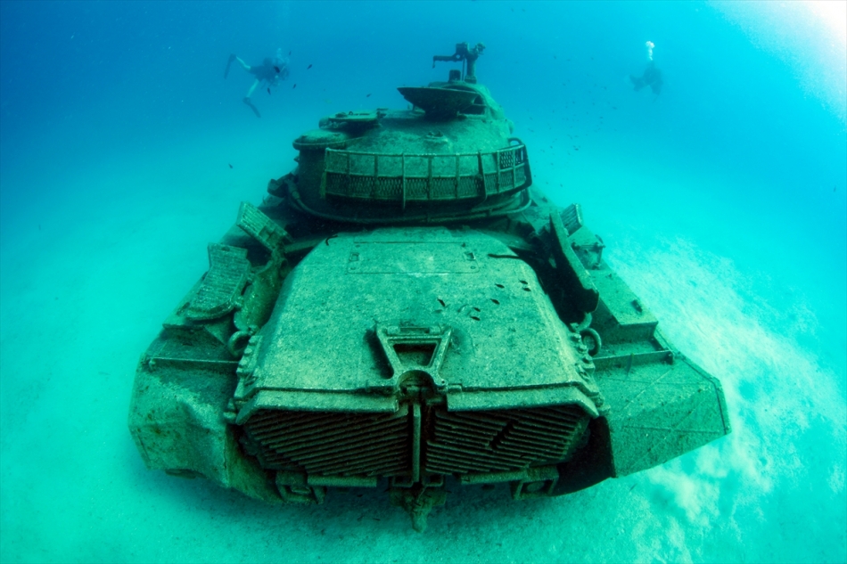 Antalya Valiliği tarafından Kaş ilçesine getirilerek Güvercin Adası yakınlarında batırılan 1960 model tank, su altı meraklılarını ağırlıyor.