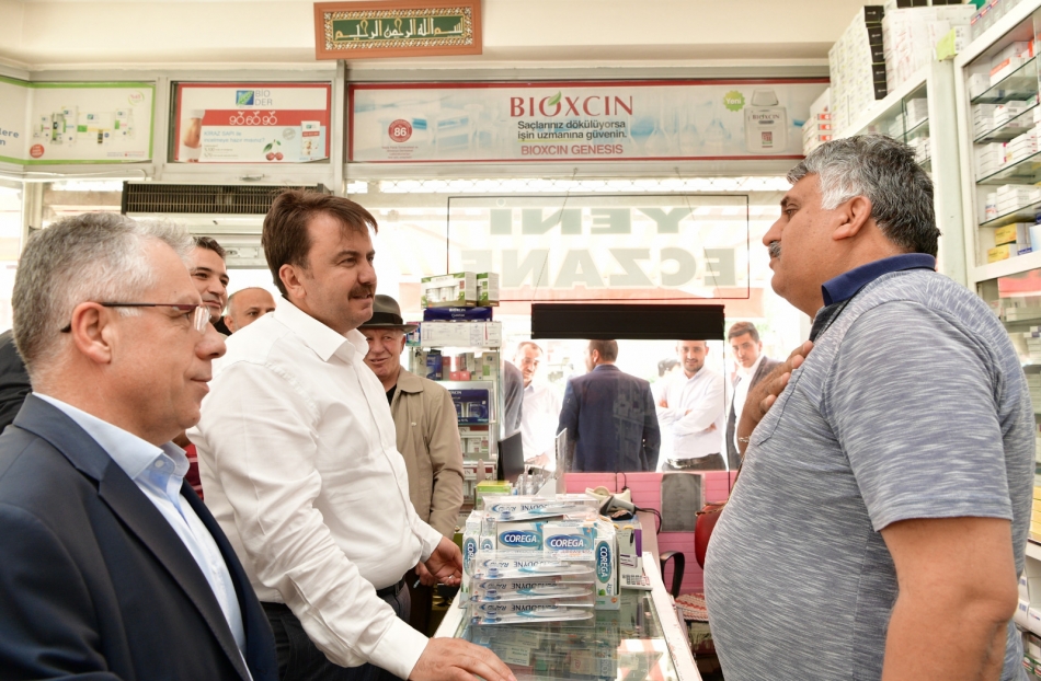 Kahramanmaraş Büyükşehir Belediye Başkanı Fatih Mehmet Erkoç, Afşin ilçesinde düzenlediği gezilerde esnaflarla ve vatandaşlarla sohbet etti.