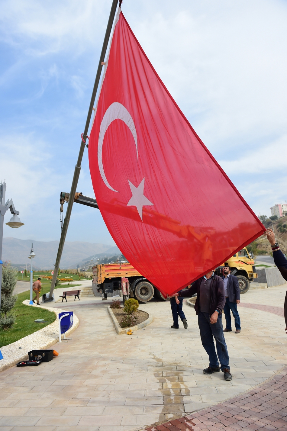 Dulkadiroğlu'ndan 23 metrelik bayrak direği