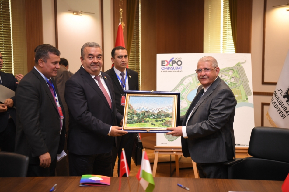 EXPO 2023’e katılım protokolü imzalamak üzere Kahramanmaraş’a gelen Tacikistan Hatlon Bölge Valisi Qurbon Hakimzoda ve Tacikistan Ankara Büyükelçisi Ashrafjon Gulov öncülüğündeki heyet, Onikişubat Belediye Başkanı Hanefi Mahçiçek, Ticaret ve Sanayi Odası ile MADO Dondurma Fabrikası’nı ziyaret etti.