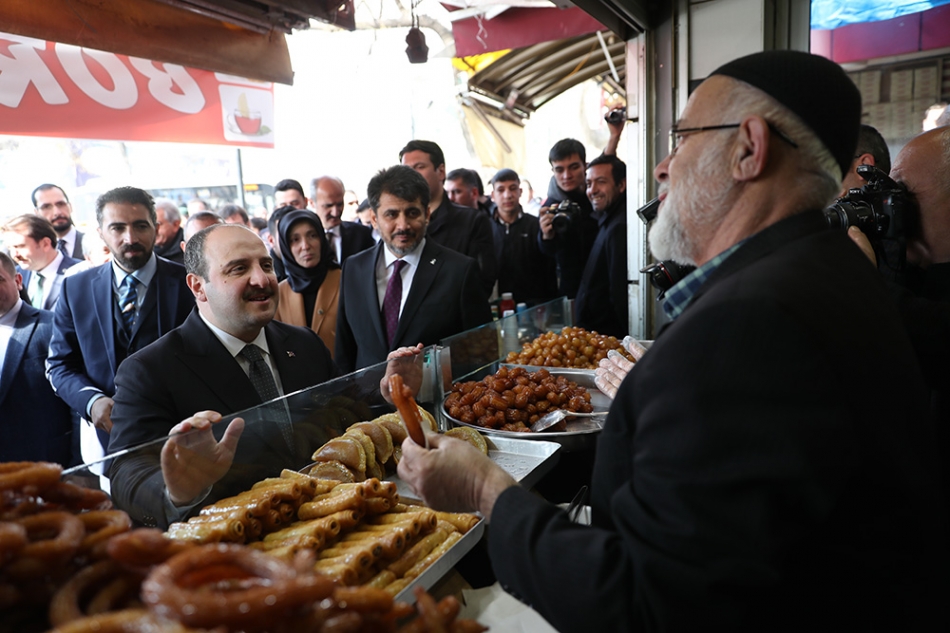 Sanayi ve Teknoloji Bakanı Mustafa Varank, bir dizi gezi ve incelemede bulunmak üzere geldiği Kahramanmaraş’ta vatandaşlara şerbet ve çörek ikram etti.