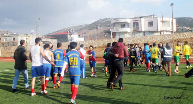 Kel Celal Stadyumunda Pazarcık Kartalkayaspor ve Fidanspor arasında oynanan maçtan sonra iki takım futbolcuları arasında kavga çıktı. Büyükler Ligi B Grubu 11. hafta karşılaşmasında 1-0 önde sürdürdüğü karşılaşmada 1-2 geri düşen Pazarcık Kartalkayaspor maçın bitiminden sonra sahada olaylar çıktı. Fidanspor Teknik patronu Bülent Okyaz’ında darbe aldığı saha olaylarında Pazarcıksporlu futbolcular saha olaylarını ceyeran etti. Lider Fidanspor'lu oyuncuların sahada mahsur kaldığı oyunda Pazarcık Kartalkayaspor'lu oyuncular ise soyunma odasına gitti ve hırsını alamayarak sahaya geri dönüş yaptı. Soyunma odasından sahaya tekrar dönerek, Fidanspor'lu futbolculara saldıran futbolcular Tekme tokat bir birine girerken Emniyet güçleri ise olaya müdahil olarak olayı sakinleştirmeye çalıştı. Emniyet Güçlerinin sakinleştirmeye çalıştığı olaya taraftarlarda müdahil olunca olaylar daha da çığırını aşarak saha içerisi kargaşaya dönüştü. Saha içerisinde gerginliğin ve çirkin saldırıyı önlemek için Emniyet görevlileri havaya ateş açtı. Emniyet güçlerinin de zorluk içerisinde ayırmaya çalıştığı olayda Fidansporlu futbolculardan 4-5 futbolcu yaralanırken Fidanspor’un da Teknik Patronu Bülent Okyaz’da olaydan darbe aldı. Pazarcık Kartalkaya’lı futbolcularında ufak tefek darbe aldığı olaylar karakola intikal etti. Karakola başvurular sonrası ise olay uzayarak soruşturma başlatıldı.