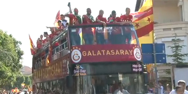 Galatasaray, Spor Toto Süper Lig'de 2014-2015 sezonu şampiyonluğunu kutlamaya başladı.Türk Telekom Arena'da düzenlenecek törenle şampiyonluk kupasını alacak sarı-kırmızılı futbolcular, üstü açık otobüsle Florya Metin Oktay Tesisleri'nden ayrıldı. Otobüste futbolcuların yanı sıra teknik heyet ve yöneticiler de yer aldı.