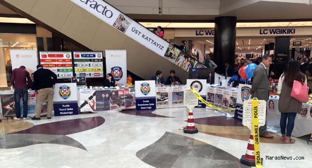 Polis Haftası etkinlikleri dolayısıyla kurulan stantta, ziyaretçilere polisin çalışmaları anlatılıyor, broşürler dağıtılıyor. Ziyaretçilere, polis teşkilatının kullandığı teknolojilere ilişkin bilgiler de veriliyor.