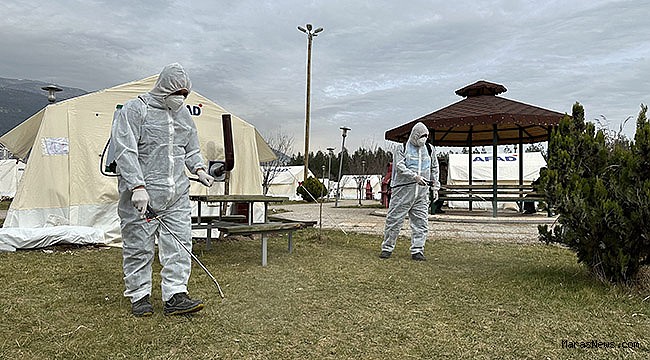 Şehirde enkaz kaldırmadan barınmaya, ulaşımdan altyapıya tüm alanlarda çalışmalarını aralıksız sürdüren Kahramanmaraş Büyükşehir Belediyesi, halk sağlığının korunması noktasında da temizlik, çöp toplama, dezenfeksiyon ve ilaçlama uygulamalarına devam ediyor. Çevre Koruma ve Kontrol Dairesi Başkanlığı koordinesinde yürütülen çalışmalarla özellikle çadır ve konteyner kent gibi ortak kullanım alanları dezenfekte edilerek, meydana gelebilecek salgın hastalıkların önüne geçilmesi ve halk sağlığının korunması hedefleniyor. Çevre Koruma ve Kontrol Dairesi Başkanlığı’ndan yapılan açıklamada; halk sağlığının korunması, meydana gelebilecek salgın hastalıkların önüne geçilmesi ve kent estetiğinin sağlanması noktasında şehir genelinde temizlik, dezenfeksiyon ve ilaçlama çalışmalarının aralıksız devam edeceği belirtildi.
