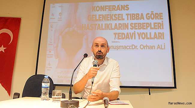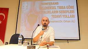 vatandaşların katıldığı konferansta Dr. Orhan Ali, beslenme