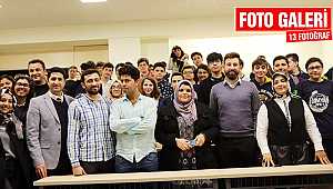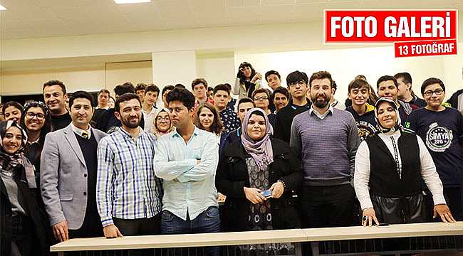 Simya Koleji’nde öğrenciler ile söyleşi yapan genç