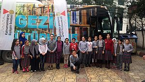 bahçesine konuşlanan Gezici kütüphane bir hafta boyunca bu okulda hizmet