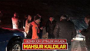 çıkan 2 kişi, kar yağışıyla birlikte mahsur kaldı. Jandarma ekipleri tarafından