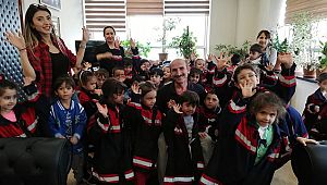 Dairesi Başkanı Cahit Küçükönder’i makamında ziyaret eden öğrenciler,