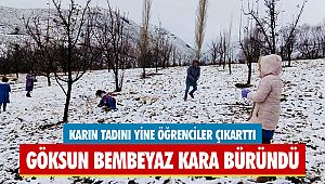 Mahallesi Müdürler İlkokulu öğrencileri de yılın ilk karının tadını