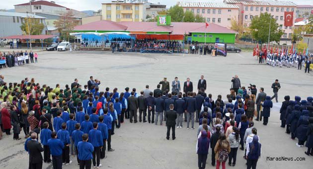 İlk tören kaymakamlık bahçesinde, Cumhuriyet’in kurucusu Gazi Mustafa Kemal Atatürk'ün büstüne çelenk konulmasıyla başladı. Daha sonra İstiklal Marşı’nın okundu, şiir okundu, Göksun Kaymakamı Cengiz Ayhan, günün anlam önemini belirten bir konuşma yaptı.