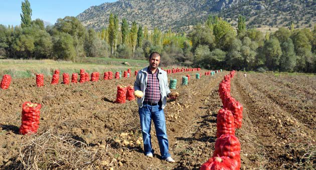 1000 metrekarede (dekar)’a yapılan ekimden -6 ton arası mahsul alındığını belirten ve 8 yılın sonunda toplam 12 dekar ekim yaptığını ve kendi çalışma sistemi hakkında bilgileri aktaran Demir sözlerini şöyle sürdürdü:” Kimyasal gübre kullanmıyoruz,yıllanmış koyun gübresi ile doğal patates üretimi yapıyoruz.Bilirsiniz köylerimizde salça yapılırken eski alışkanlık olarak domates atıkları ya hayvanlara verilir yada zibillik dediğimiz yere atılırdı.Böylece gübreyle domates çekirdekleri tarlaya ulaşır ekim alanımızda da görüldüğü gibi bazı noktalarda köy domatesi çıktığı görülüyor. Bunlar doğal gübreleme sonucu toprak ile buluşan domates çekirdeklerinin göstergesi olduğu gibi bu olay doğal gübreleme sonucunda meydana geldiğinide belirmek isterim.Bu yıl melody cinsi patates üretimi yaptım. Bölgemizde bu cinsin daha verimli olduğunu gördüm.Sulama ihtiyacını yağmurlama sulama sistemi ile yapıyoruz.Bölgemizde ekim dönemi 15Nisan-15 Mayıs tarihleri arasıdır.Dikim yapılmadan önce tohumların ilaçlanması gerekmektedir.”