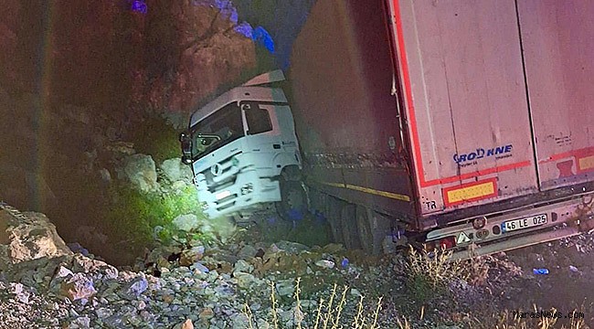 Edinilen bilgiye göre, ilçeye bağlı Keklikoluk mevki üzerinde seyir halinde olan ismi öğrenilemeyen sürücü yönetimindeki tırın direksiyon hakimiyetini kaybederek yoldan çıktı. Yoldan çıkan tır dağ yamacında yer alan kayalıklara çarparak ancak durabildi. Kazada sürücü hafif yaralanırken maddi hasar oluştu.