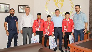 İl Müdür Kabakcı güreşçilerimizi ayrı ayrı tebrik etti. Ziyaret sonunda Hatıra