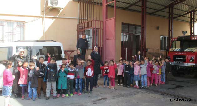 Yaklaşık 1,5 saat süren ziyaretin sonunda, abileriyle hatıra fotoğrafı çektiren öğrenciler itfaiye binasından ayrıldı.